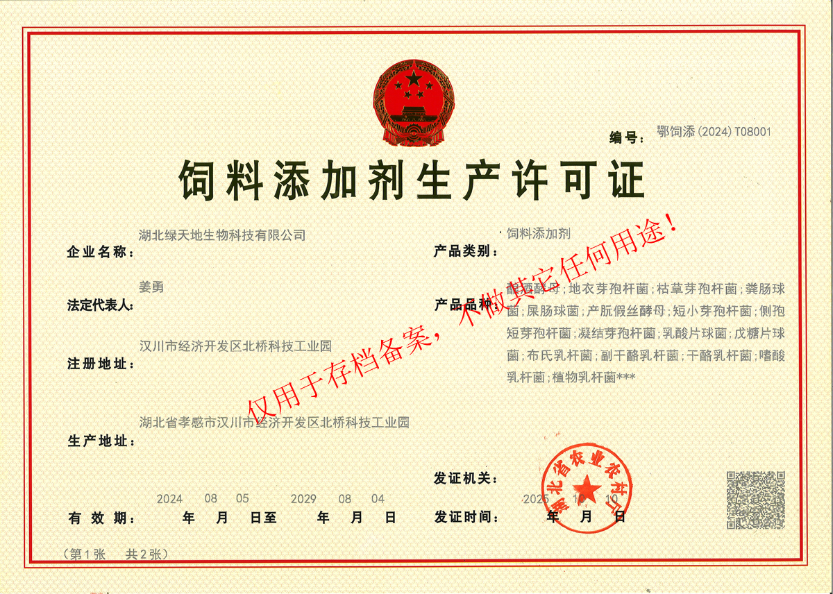湖北綠天地生物科技有限公司 (簡稱綠天地公司)投資7000萬元,擁有25000平方米的廠房和國內(nèi)先進(jìn)的設(shè)備360臺套,建有微生物發(fā)酵、發(fā)酵冷凍干燥、低溫造粒等8個(gè)車間,發(fā)酵罐總?cè)萘?50立方米,專業(yè)的飼用級益生菌發(fā)酵生產(chǎn)基地。 公司已通過IS09001:2015質(zhì)量管理體系認(rèn)證。 綠天地公司得到了華中農(nóng)業(yè)大學(xué)、中國農(nóng)...
